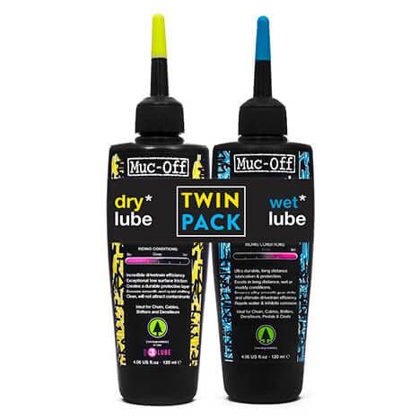 Perfect for essential maintenance.  For this amazing price you get any 2 of your choice of the larger 120ml bottles of Muc-Offs superb bio wet or dry lube.